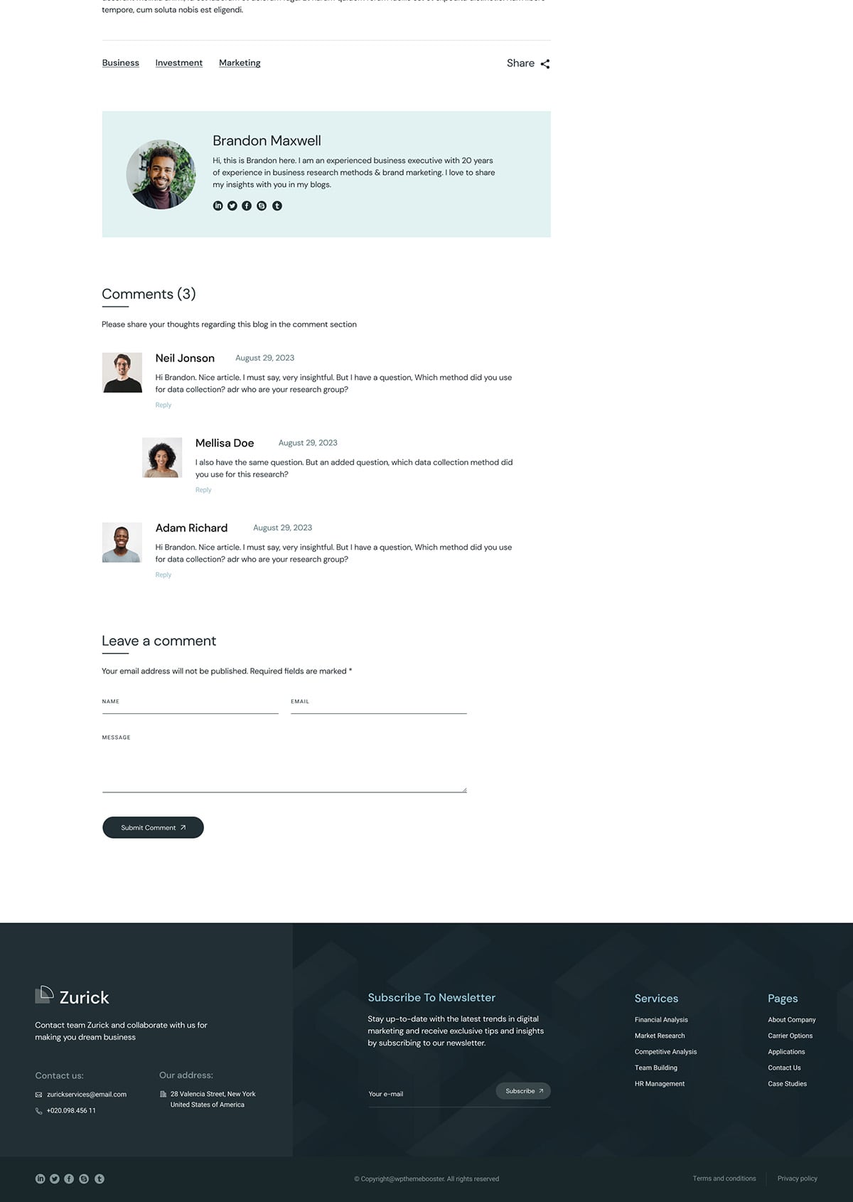 We have provide complete blog pages layout in this theme. You will get a versatile view of blog section & details layouts related to your website.